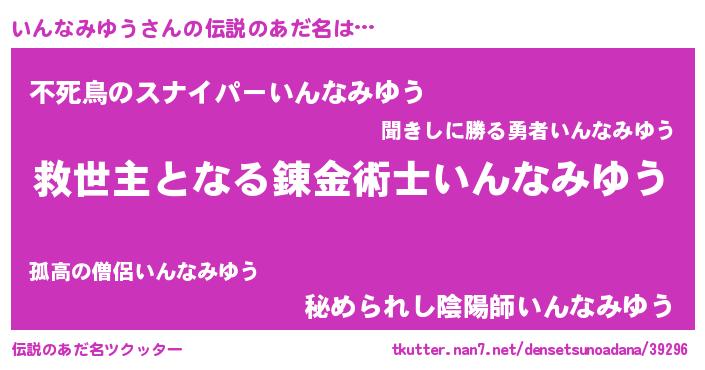 | 男性向けラノベタイトル風あだ名 | 『ノーゲーム・ノーインナミユウ』 |