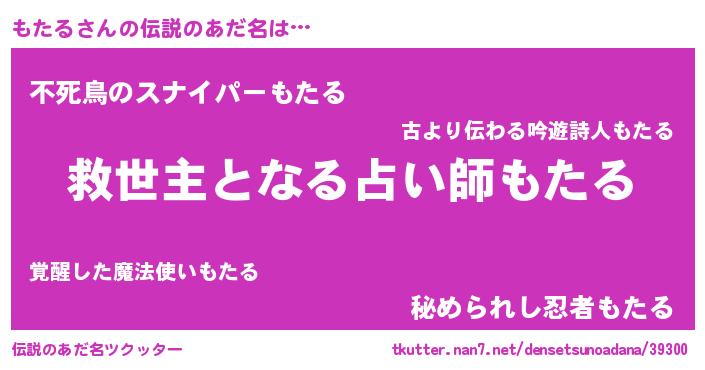 | 男性向けラノベタイトル風あだ名 | 『もたるに滅ぼされるだけの簡単なお仕事です』 |