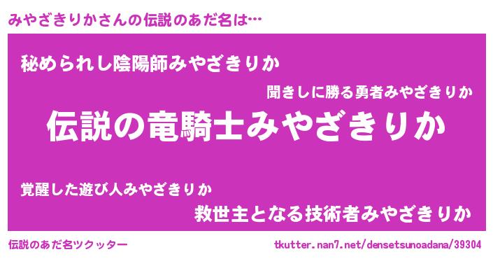 | ヒーロー風カッコイイあだ名 | 『仮面ミヤダー』『スーパーミヤザキリカ』 |