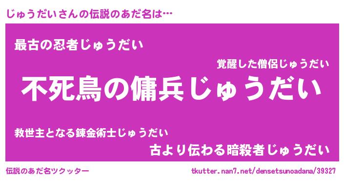 | 胡散臭い通販商品みたいなあだ名 | 『モテモテ間違いなし水晶球…その名も「じゅうだい」』 |