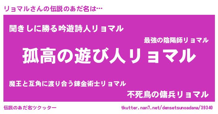 | 男性向けラノベタイトル風あだ名 | 『ダンジョンにリョマルを求めるのは間違っているだろうか』 |