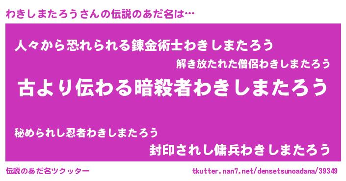 | 意味不明あだ名 | 『永久保存わきしまたろう』 |