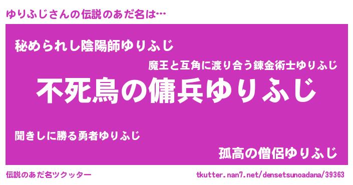 | ヒーロー風カッコイイあだ名 | 『スーパーユリフジ』『仮面ユリダー』 |