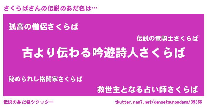 | 意味不明あだ名 | 『永久保存さくらば』『自称さくらば』 |