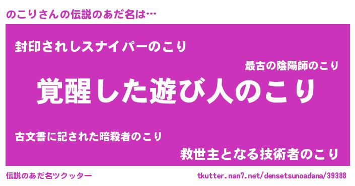 | ヒーロー風カッコイイあだ名 | 『炎刃騎士ノコ』『スーパーノコリ』 |