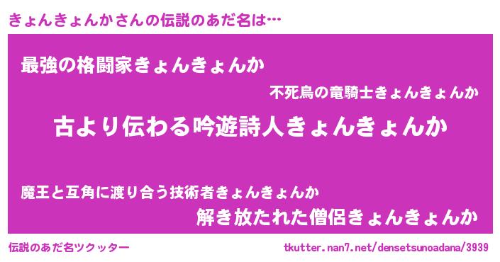 | 意味不明あだ名 | 『自称きょんきょんか』 |