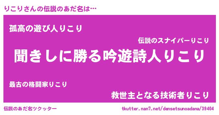 | 男性向けラノベタイトル風あだ名 | 『りこりという概念が存在しない退屈な世界 』 |