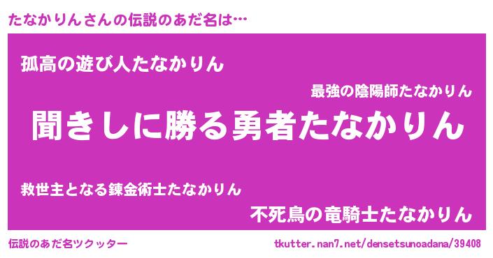 | ヒーロー風カッコイイあだ名 | 『ネオタナカリン』『炎刃騎士タナ』 |