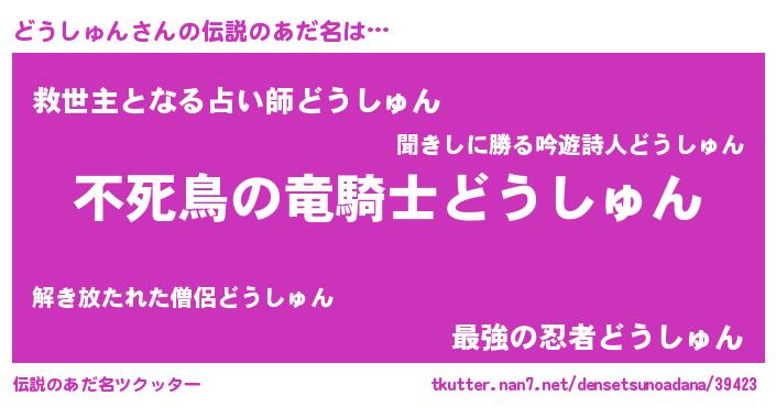 | 男性向けラノベタイトル風あだ名 | 『どうしゅんの憂鬱』 |