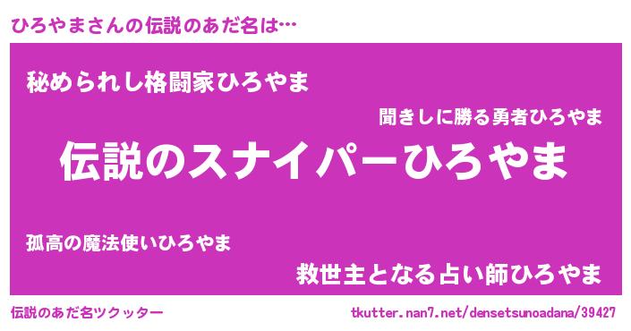 | 胡散臭い通販商品みたいなあだ名 | 『必ず成功する霊験あらたかなお札…その名も「ひろやま」』 |