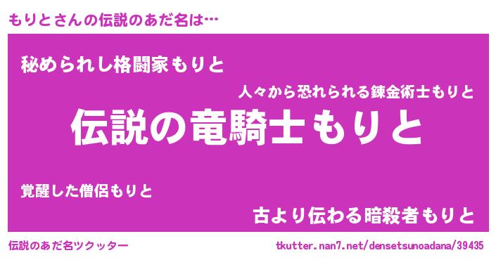 | 意味不明あだ名 | 『ペロリンもりと』『自称もりと』 |