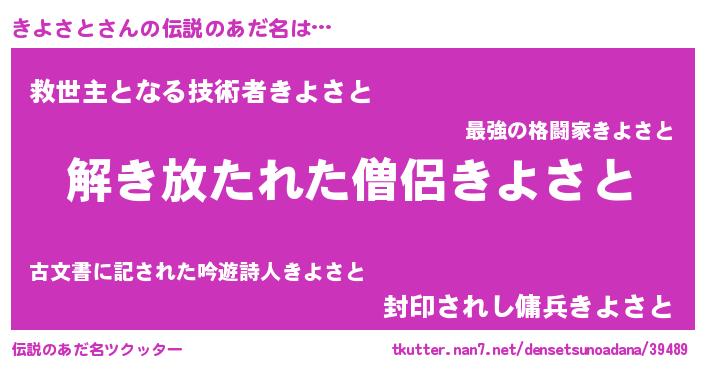 | 意味不明あだ名 | 『とにかく怪しいきよさと』 |