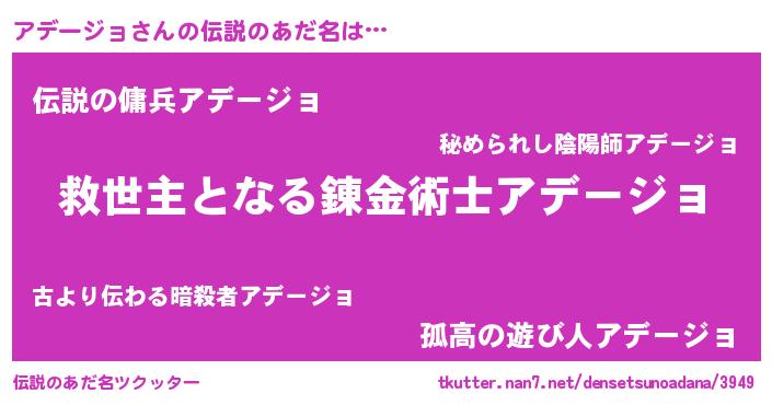 | 女子向けラノベタイトル風あだ名 | 『死神アデージョの再婚』 |