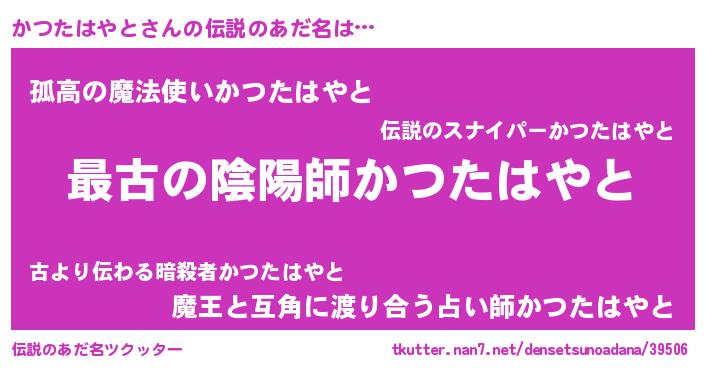 | 意味不明あだ名 | 『かつたはやとフォーエバー』 |