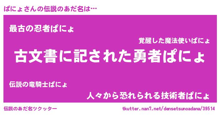| ヒーロー風カッコイイあだ名 | 『ネオパニョ』『ウルトラぱにょマン』 |