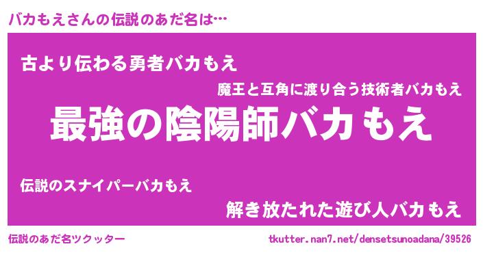 | ヒーロー風カッコイイあだ名 | 『ウルトラバカもえマン』『ネオバカモエ』 |