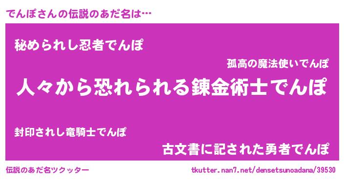 | ヒーロー風カッコイイあだ名 | 『友情の使者でんぽ』『仮面デンダー』 |