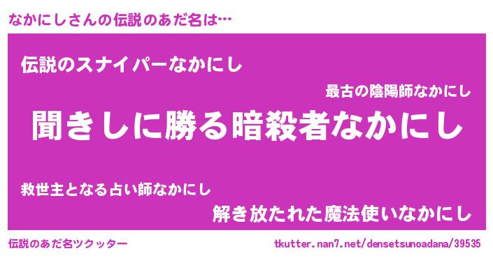 | 男性向けラノベタイトル風あだ名 | 『なかにしという概念が存在しない退屈な世界 』 |