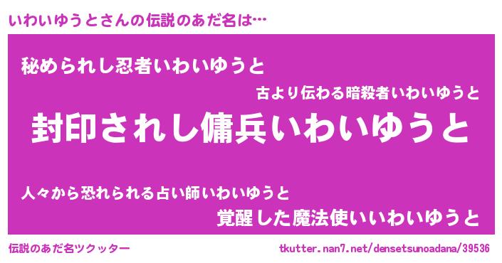 | 意味不明あだ名 | 『住所不定無職いわいゆうと(14歳)』 |