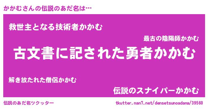 | 意味不明あだ名 | 『自称かかむ』『永久保存かかむ』 |