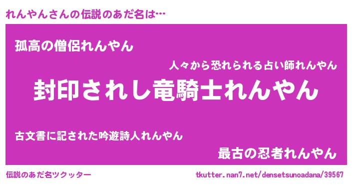 | ヒーロー風カッコイイあだ名 | 『スーパーレンヤン』『黄金騎士レン』 |
