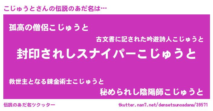 | 意味不明あだ名 | 『住所不定無職こじゅうと(84歳)』 |