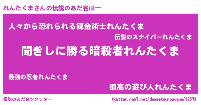 | 男性向けラノベタイトル風あだ名 | 『れんたくまという概念が存在しない退屈な世界 』 |