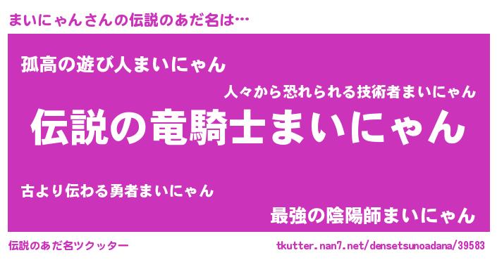 | 男性向けラノベタイトル風あだ名 | 『まいにゃんの憂鬱』 |