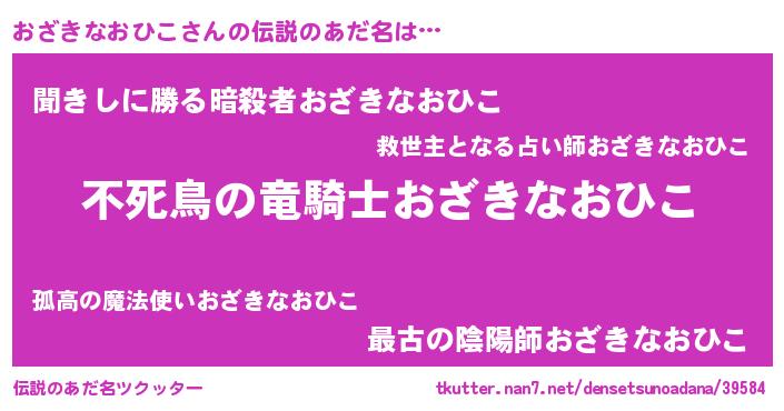 | 意味不明あだ名 | 『自称おざきなおひこ』 |