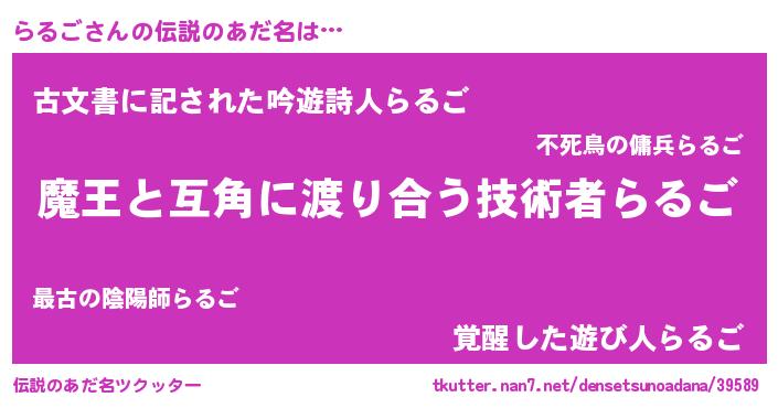 | ヒーロー風カッコイイあだ名 | 『友情の使者らるご』『究極戦士ラルゴ』 |