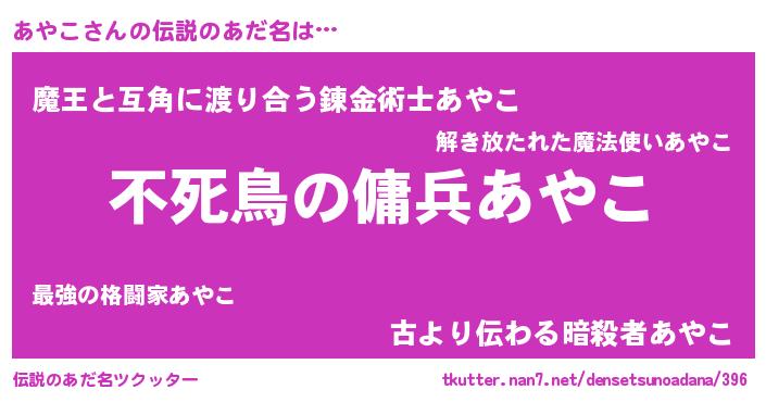 | ヒーロー風カッコイイあだ名 | 『スーパーアヤコ』『愛の使者あやこ』 |