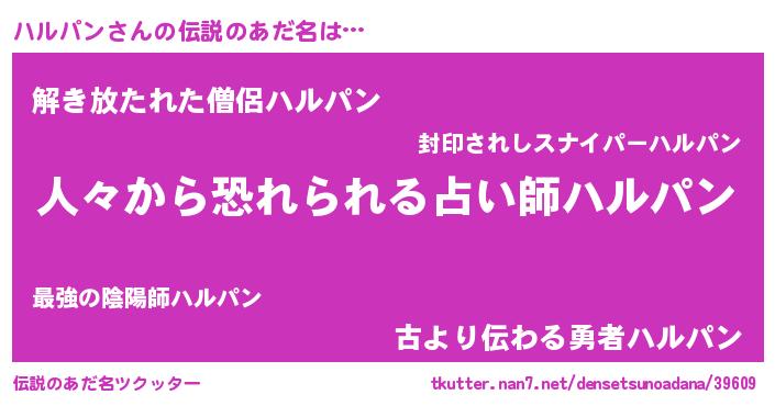 | 男性向けラノベタイトル風あだ名 | 『魔法科高校のハルパン』 |
