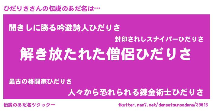 | ヒーロー風カッコイイあだ名 | 『サイバー戦士ヒダリサ』『仮面ヒダダー』 |