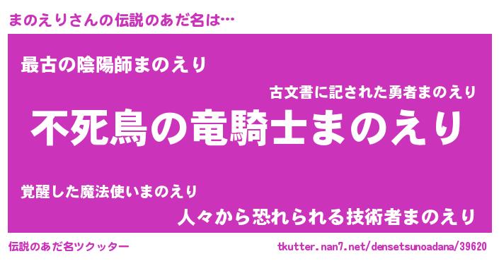 | 男性向けラノベタイトル風あだ名 | 『転生したらまのえりだった件』 |