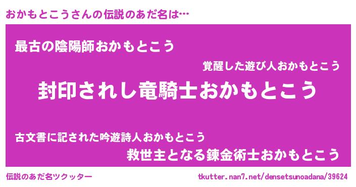 | 男性向けラノベタイトル風あだ名 | 『うちのおかもとこうが世界を掌握している!』 |