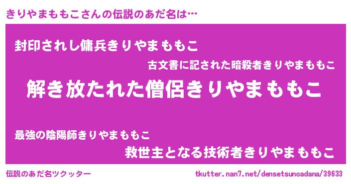 | 意味不明あだ名 | 『自称きりやまももこ』 |