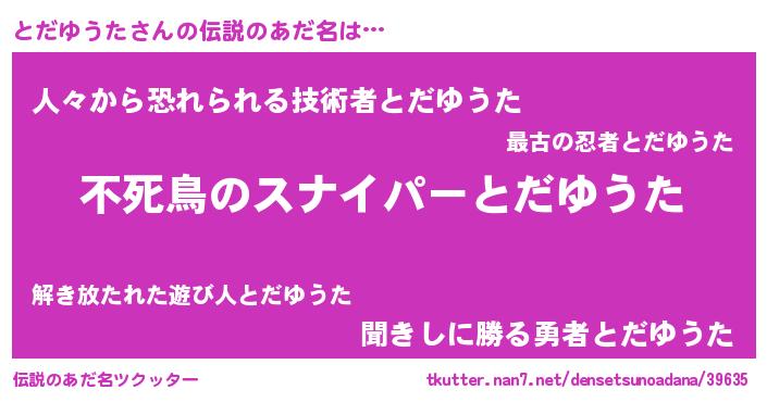| ヒーロー風カッコイイあだ名 | 『仮面トダダー』『スーパートダユウタ』 |