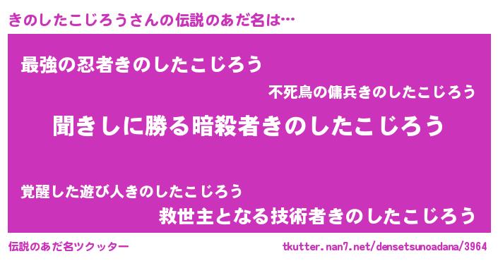 | 男性向けラノベタイトル風あだ名 | 『キノシタコジロウスレイヤー』 |