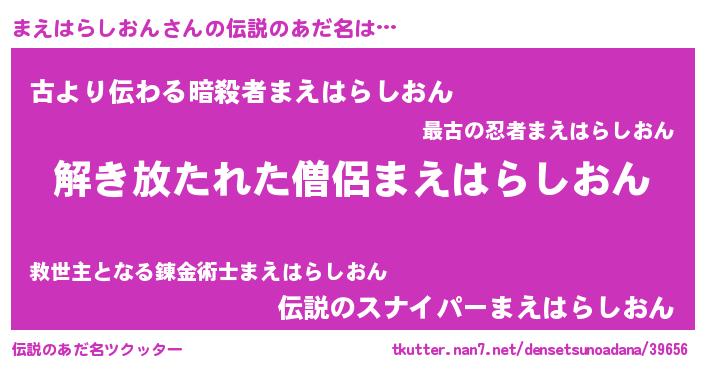 | 意味不明あだ名 | 『とにかく怪しいまえはらしおん』 |