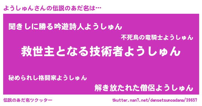 | ヒーロー風カッコイイあだ名 | 『仮面ヨウダー』『愛の使者ようしゅん』 |