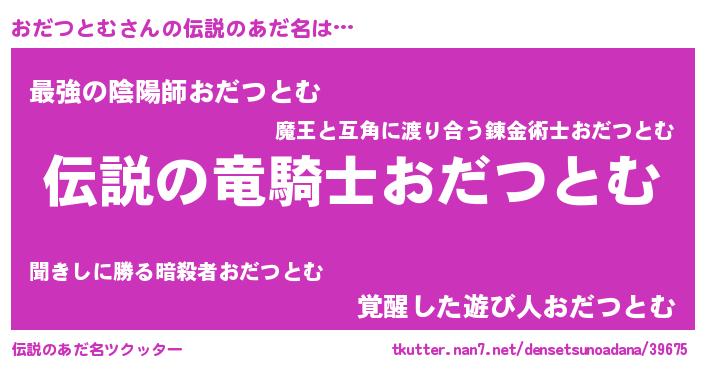 | ヒーロー風カッコイイあだ名 | 『スーパーオダツトム』『幻影騎士オダ』 |