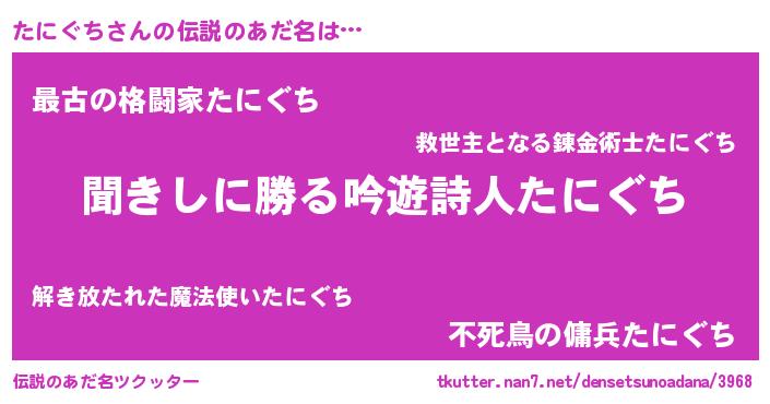 | 意味不明あだ名 | 『自称たにぐち』『永久保存たにぐち』 |
