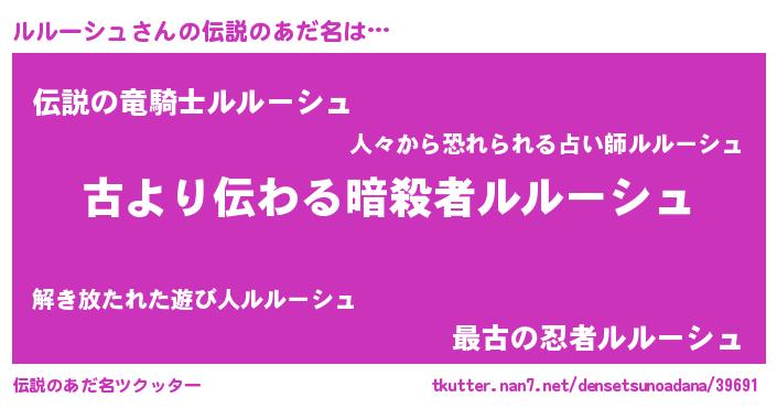 | 意味不明あだ名 | 『永久保存ルルーシュ』『自称ルルーシュ』 |