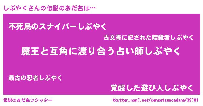 | ヒーロー風カッコイイあだ名 | 『愛の使者しぶやく』『スーパーシブヤク』 |