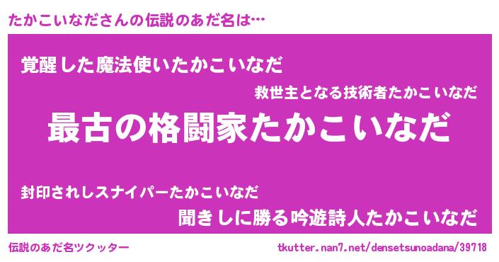 | ポケモン風あだ名 | 『タカセウス』『タカコダネ』 |