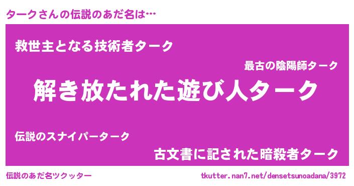 | ヒーロー風カッコイイあだ名 | 『銀牙騎士ター』『愛の使者ターク』 |