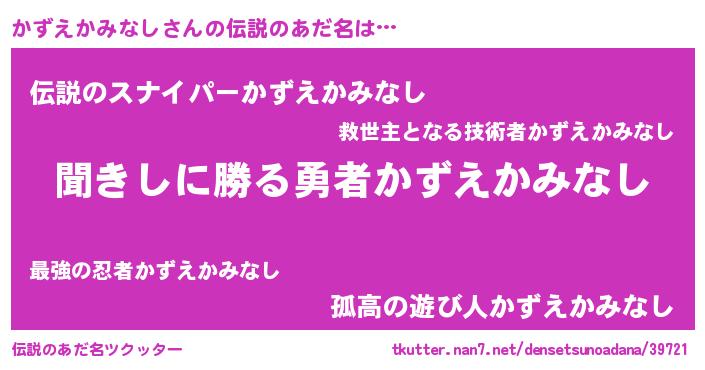 | 男性向けラノベタイトル風あだ名 | 『かずえかみなしという概念が存在しない退屈な世界 』 |