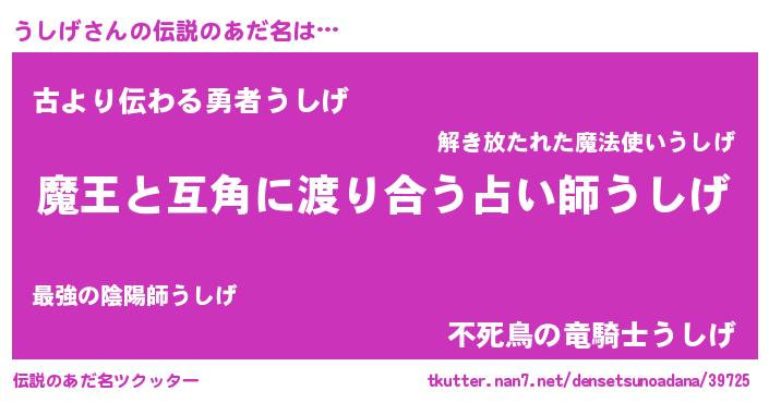 | 男性向けラノベタイトル風あだ名 | 『ノーゲーム・ノーウシゲ』 |