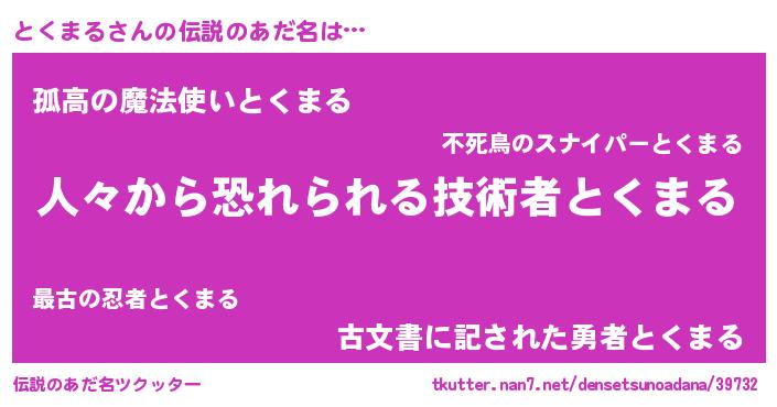 | ヒーロー風カッコイイあだ名 | 『正義の使者とくまる』『暗黒騎士トク』 |