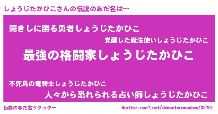 | 意味不明あだ名 | 『自称しょうじたかひこ』 |